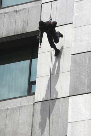隊(duì)員演練從高樓垂降進(jìn)行攻堅(jiān)