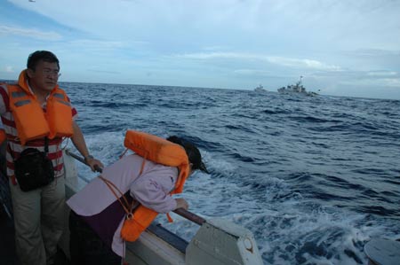 雖然一路上采訪很辛苦,不過,吐了十多次的女記者說:“很值得,也看到日本鴨霸的一面!”還有人說,參加保釣采訪痛苦一天,但若沒參加保釣采訪會(huì)遺憾一生,因?yàn)橐惠呑右@樣靠近釣魚島的機(jī)會(huì)并不多。