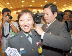 中新網(wǎng)7月1日電 據(jù)臺(tái)灣《中國(guó)時(shí)報(bào)》報(bào)道,臺(tái)軍在昨日晉升的四十三名新科中將、少將中,受到外界矚目的軍事發(fā)言人池玉蘭,不僅是1949年后臺(tái)軍第四位女將軍,由于其丈夫是前臺(tái)灣陸軍第三十四師師長(zhǎng)黃振遠(yuǎn)少將。兩人也成為臺(tái)軍首度出現(xiàn)的將軍夫妻檔。