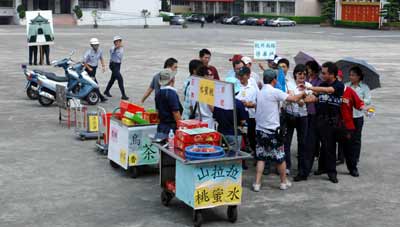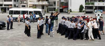 上午模擬演練的狀況,首先是風景區(qū)“鏢客”和大陸客買賣發(fā)生糾紛,警察據(jù)報到場依違反社會秩序維護法將攤販帶回偵辦;另一個狀況則是大陸觀光團在“中正紀念堂”遇上激進團體散發(fā)文宣,沖突一觸即發(fā),轄區(qū)警局緊急趕到現(xiàn)場布署,利用人墻隔開,讓大陸客安全搭上游覽車,同時驅(qū)離鬧事群眾化解危機,示范內(nèi)容生動、逼真。