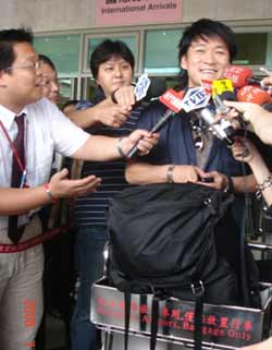 中新網(wǎng)7月4日電 兩岸周末包機(jī)今天正式啟航,臺(tái)灣音樂(lè)制作人李宗盛及歌手周華健下午都搭海南航空班機(jī)從北京直飛臺(tái)北松山機(jī)場(chǎng),李宗盛稱贊周末包機(jī)太方便了;周華健更用曾唱過(guò)的“風(fēng)雨無(wú)阻”歌曲,形容期待已久的兩岸周末包機(jī)終于上路。
