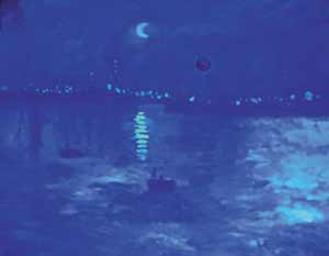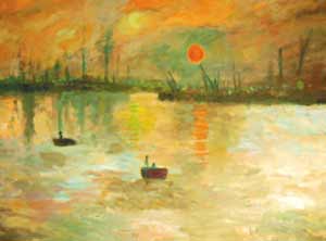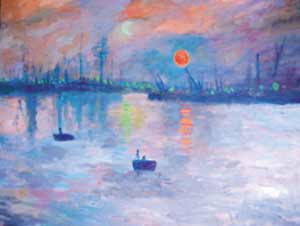 中新網(wǎng)7月9日電 莫內(nèi)名畫“印象‧日出”,也有“日落”、“夜幕”版嗎?據(jù)臺灣《聯(lián)合報》報道,臺大機械工程系教授黃秉鈞利用調(diào)控投射在名畫上的彩色LED光源,制造出名畫不同風(fēng)貌,發(fā)展出嶄新的“LED歐普藝術(shù)”。