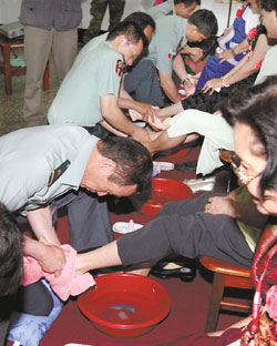 據(jù)臺(tái)灣《中國時(shí)報(bào)》報(bào)道,六軍團(tuán)弘揚(yáng)孝道,除了由單位主官要求官兵多打電話回家問候父母外,甚至鼓勵(lì)官兵嘗試回家為自己辛苦的母親洗腳,以對(duì)母親表達(dá)孝順之意,五月時(shí)更藉模范母親表揚(yáng)活動(dòng),在內(nèi)部舉辦跪地為母洗腳的儀式,據(jù)說場(chǎng)面相當(dāng)感人,在場(chǎng)所有參與的官兵和家屬都感動(dòng)落淚。