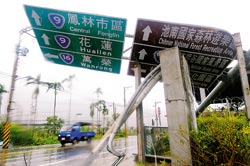 道路指示牌被風(fēng)吹倒。(圖:臺(tái)灣《中國時(shí)報(bào)》)