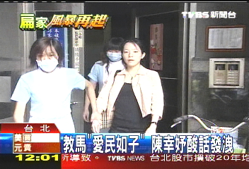 據(jù)臺(tái)灣TVBS報(bào)道,走出電梯間,面對(duì)記者,陳幸妤似乎早就準(zhǔn)備好臺(tái)詞。她說:“我‘建議’你們用十分之一(人數(shù))的記者就好,去把馬唯中‘圍’回來(lái),這樣子馬英九他就學(xué)會(huì)怎么叫‘愛民如子’!