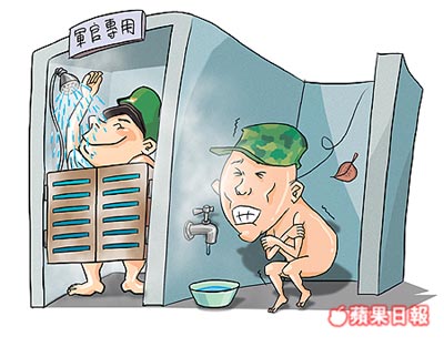 據(jù)臺灣《蘋果日報》報道,對此事,聯(lián)勤先以回應(yīng)當(dāng)局的節(jié)能減碳政策來開脫,但在進(jìn)一步被問到為何軍官仍可洗熱水澡后,馬上又改口說,是因為士官兵的鍋爐壞了,所以才無法為阿兵哥提供熱水,但聯(lián)勤坦承:“軍官寢室沒有提供給阿兵哥使用,確有缺失!