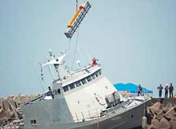 坐鎮(zhèn)指揮救援的海軍艦隊指揮部政戰(zhàn)主任劉志堅指出,已將快艇上雄風(fēng)導(dǎo)彈等火炮卸除,加掛四枚大型助浮器,經(jīng)兩次拖救未成,原定昨晚八時利用滿潮第三次拖救,因海象欠佳作罷,延至今天上午進(jìn)行。