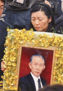 中新網(wǎng)10月18日電 據(jù)臺灣《聯(lián)合報(bào)》報(bào)道,臺塑創(chuàng)辦人王永慶的靈柩,昨天上午八時(shí)從桃園機(jī)場移至桃園縣龜山鄉(xiāng)長庚大學(xué)活動中心,當(dāng)二房長子王文洋捧著靈位,三房長女王瑞華捧著黃花鑲邊的遺像,跟著扶靈的家眷步入靈堂時(shí),在場人士無不肅穆哀容,悲痛飲泣。