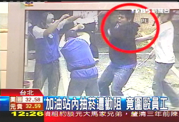 中新網(wǎng)10月20日電 據(jù)臺(tái)灣TVBS報(bào)道,臺(tái)北市文化大學(xué)附近一家加油站,有一群飚車族到加油站加油,其中一名男子抽煙被勸阻,覺得沒面子,竟然和同伴圍毆加油站員工,監(jiān)視器也拍下整個(gè)過程。
