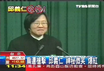 3·19槍擊案發(fā)生的第一時(shí)間,邱義仁更出面微笑召開記者會(huì),說子彈就在陳水扁身上,這也成了他最著名的“秘書長微笑”。(圖片來源:臺(tái)灣TVBS)