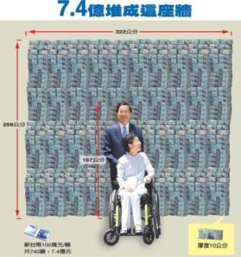 中新網(wǎng)12月2日電 臺灣《蘋果日報》1日刊文說,臺灣島內(nèi)“紅衫軍”倒扁時,扁家存放在元大的現(xiàn)鈔達(dá)7.4億元(新臺幣,下同)。以千元大鈔相疊,有22層樓高。按目前所知的計算,扁家的來源不明金錢高達(dá)20億。此外,還傳出扁用“空軍一號”載錢出境。怎樣?我們“臺灣之子”酷吧!