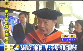 中新網(wǎng)12月6日電 據(jù)臺(tái)灣TVBS報(bào)道,國(guó)際知名鑒識(shí)專家李昌鈺博士5日前往臺(tái)灣正修科大接受名譽(yù)博士學(xué)位,還特地發(fā)表專題演講,對(duì)于扁家傳出洗錢弊案,李昌鈺說(shuō)當(dāng)初他鑒識(shí)陳水扁319槍傷時(shí),沒(méi)想到他會(huì)貪那么多錢,對(duì)此他深感難過(guò)。