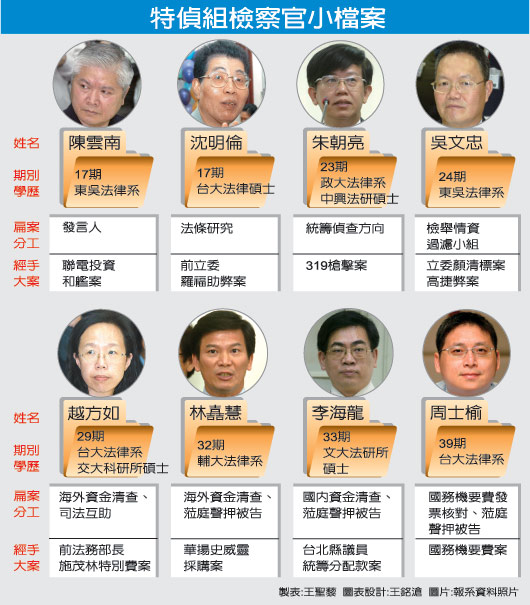 特偵組偵辦扁案,超越過去分組辦案模式,包括主任陳云南、檢察官沈明倫、朱朝亮、吳文忠、越方如、林(吉吉吉)慧、李海龍、周士榆等8人共同納入項目小組,協(xié)同辦理這件世紀(jì)大案。