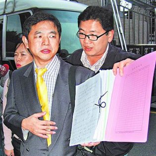 陳水扁律師展示陳水扁手稿。(來源:臺(tái)灣《蘋果日?qǐng)?bào)》)