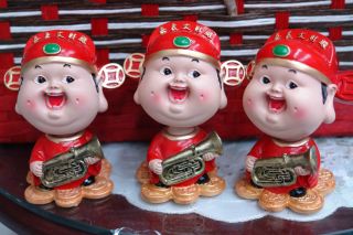 文財(cái)?shù)畛脵C(jī)也結(jié)合嘉義市正在舉行的國(guó)際管樂(lè)節(jié),推出一套五尊的可愛(ài)財(cái)神爺祈福公仔。戴著財(cái)神帽的公仔,頭部可以靈活晃動(dòng),手上則是拿著法國(guó)號(hào)、薩克斯風(fēng)等樂(lè)器,造型極為逗趣。