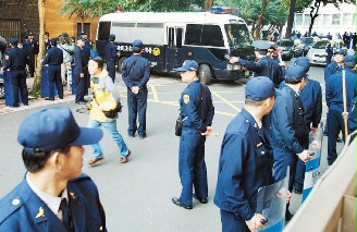 警察不敢掉以輕心,一字排開(kāi)并分持盾牌、警棍將臺(tái)北地院四周團(tuán)團(tuán)圍起,進(jìn)行管制,還有便衣刑警錄像搜證。特勤維安人員除穿插在警方陣勢(shì)中,法庭內(nèi)外更是到處可見(jiàn)。