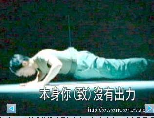 中新網(wǎng)1月21日電 據(jù)臺灣“今日新聞”報道,陳水扁之子陳致中9年前為父親助選拍的伏地挺身(俯臥撐)廣告,其實是吊鋼絲完成的,當年幫陳致中吊鋼絲的師傅直接點明陳致中雙手根本沒有力,才要靠吊鋼絲來輔助。