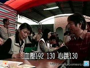 中新網(wǎng)3月26日電 據(jù)臺灣“今日新聞”報道,馬英九夫人周美青今天出現(xiàn)在云林,她再度以紅十字會志工身分幫民眾量血壓。有了經(jīng)驗的她這次駕輕就熟。不過,有一位民眾第一次看到她,緊張地血壓飆到192,讓周美青當(dāng)場嚇到。