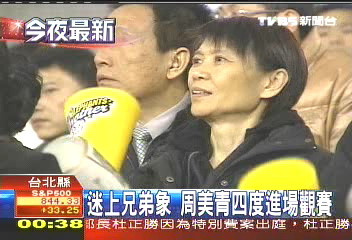 中新網(wǎng)4月3日電 據(jù)臺灣TVBS報道,馬英九夫人周美青最近迷上臺灣職業(yè)棒球,只要有她支持的兄弟象隊出賽,她都一定到場加油,但終場兄弟象還是輸了比賽,讓周美青好失望。