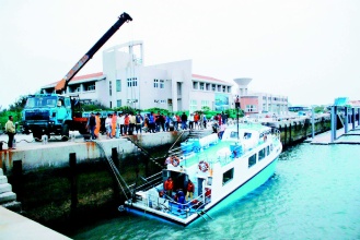 吉貝安檢所副所長(zhǎng)高敬育說,因?yàn)槌辈畹年P(guān)系,船靠岸時(shí),距碼頭高度仍達(dá)兩米,安檢人員必須用拉或抱的,才能將乘客拉上岸。