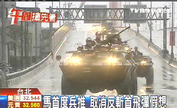 凌晨5點,天色才剛亮起,負(fù)責(zé)保衛(wèi)博愛特區(qū)的憲兵202指揮部大批甲車緩緩開出,第二輛六輪甲車正是到中興寓所護(hù)送馬英九的萬鈞車,這是馬英九上任后,首度主持兵推。