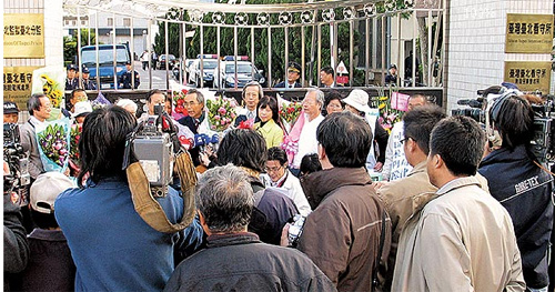 命運(yùn)丕變:扁進(jìn)入北所的第一道關(guān)卡,所有因扁的抗?fàn)帯⒙曉,或是律師、探視者發(fā)表談話,都是在這道大門發(fā)生。