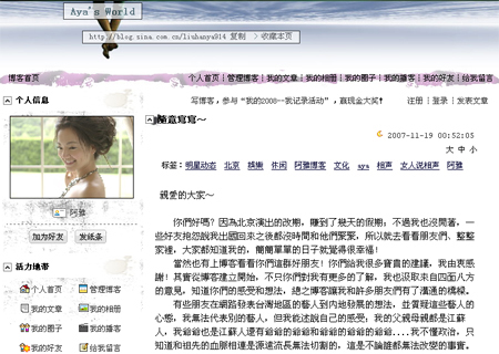 某門戶網(wǎng)站將阿雅這篇寫于十一月十九日凌晨的博客文章鏈接在顯要位置,吸引許多網(wǎng)友涌入,短短不到兩天時間,已有逾四百條留言。