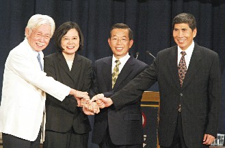 前“總統(tǒng)府國(guó)策顧問”黃昆虎昨天中午邀請(qǐng)“考試院長(zhǎng)”姚嘉文、“立委”王幸男等人,與辜寬敏、蔡同榮協(xié)調(diào),由黨員強(qiáng)力要求兩人合作,最后協(xié)調(diào)出現(xiàn)契機(jī),蔡同榮決定退選。蔡同榮指出,他與另一位黨主席候選人辜寬敏路線相近,辜寬敏堅(jiān)持不愿意退,因此他決定退選,全力支持辜寬敏。辜蔡兩人今天上午十點(diǎn)在臺(tái)大校友會(huì)館召開者會(huì)對(duì)外說明,但巧合的是,蔡英文在同時(shí)間、同樣在臺(tái)大校友會(huì)館,舉行與公民團(tuán)體對(duì)話記者會(huì)。