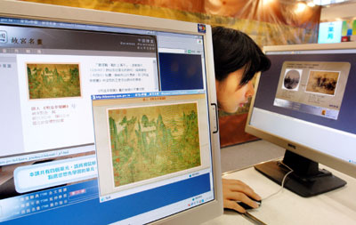 中新網(wǎng)10月23日電 據(jù)“中央社”報道,數(shù)字學習科技成果展二十三日在臺北世貿(mào)展覽館一館舉行。圖為臺北故宮博物院展出在線名畫欣賞教學。