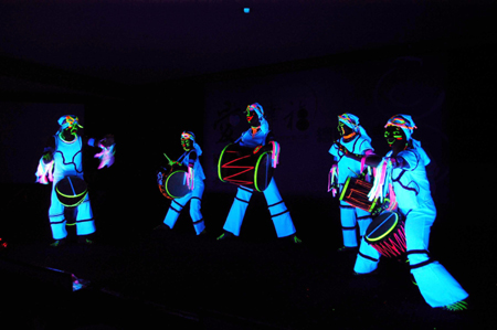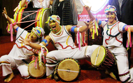 2008高雄燈會(huì)藝術(shù)節(jié)即將登場(chǎng),表演團(tuán)體十八日先演出精彩片段,令人驚艷!爸醒肷纭眻D 陳朝福 攝