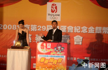 圖:北京奧運(yùn)紀(jì)念金銀幣在臺(tái)北慈善拍賣