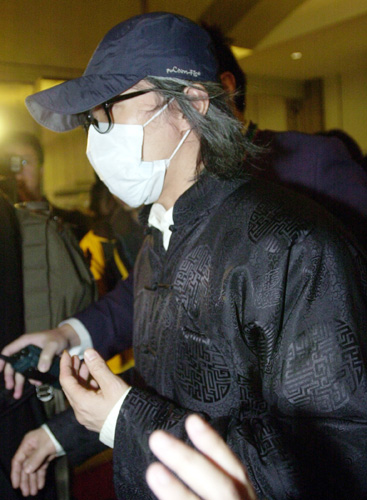 香港藝人周星馳一月二十九日搭機(jī)來(lái)臺(tái)宣傳新作,他以神秘裝扮出現(xiàn)。( “中央社”圖;劉得倉(cāng)攝)