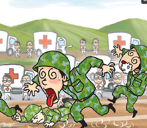 中新網(wǎng)7月23日電 據(jù)臺(tái)灣《蘋果日?qǐng)?bào)》報(bào)道,臺(tái)軍后備司令部成功嶺新訓(xùn)中心21日實(shí)施馬英九核定的體能檢測(cè),可能因?yàn)樘鞖鉄,十多名新兵頭暈、體力不支,司令部立即將類似中暑阿兵哥送醫(yī)治療,由于有近十輛救護(hù)車進(jìn)出營(yíng)區(qū),一度讓附近居民誤認(rèn)“發(fā)生重大傷亡”。后備司令部表示,不適新兵已陸續(xù)返回部隊(duì)休息,有兩人仍在醫(yī)院休養(yǎng)。