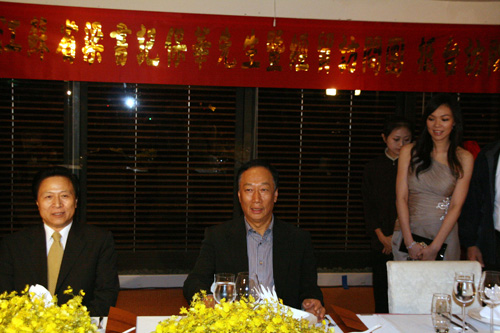 梁保華所帶領的大陸江蘇省經(jīng)貿考察團,晚上6時30分在涵碧樓湖光軒餐廳接受郭臺銘的晚宴,陪同的臺灣政商人士包括國民黨副主席林豐正、全臺工業(yè)總會理事長陳武雄等人,計有兩岸代表約50人參加。