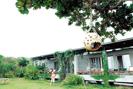 走過(guò)華麗年代的民宿風(fēng)格,近年漸漸出現(xiàn)回歸在地特色、外型低調(diào)的民宿建筑。例如臺(tái)東都蘭的“來(lái)吹涼風(fēng)”,開(kāi)車(chē)順著山路蜿蜒而上,沿途找不到任何指示牌,約十分鐘后,才會(huì)見(jiàn)到一棟不起眼的建筑,“因?yàn)椴幌胱尨笞匀涣粝绿嗟囊曈X(jué)負(fù)擔(dān)”,老板郭宗興說(shuō)。