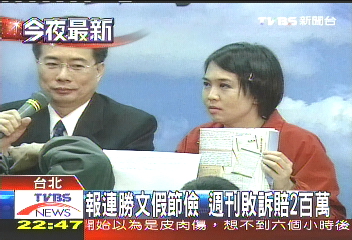 結(jié)果一審判決,《壹周刊》和社長(zhǎng)裴偉,要各付100萬給連惠心,總共200萬元;但壹周刊不服再上訴,現(xiàn)在二審定讞,《壹周刊》確定得賠償200萬,全案不得再上訴。