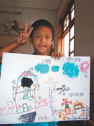 “希望畫(huà)畫(huà)能讓孩子們受傷的內(nèi)心紓壓,暫時(shí)忘卻煩惱!逼焐缴绺p^的志工帶著小朋友在教室內(nèi)畫(huà)畫(huà),志工希望孩子們發(fā)揮天馬行空的想象,畫(huà)出心中的家,藉此了解孩子受創(chuàng)后的想法。