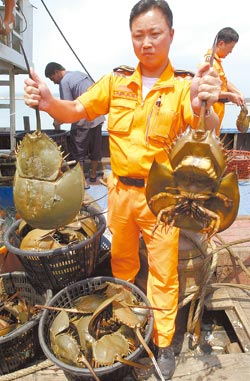 中新網(wǎng)9月18日電 據(jù)臺(tái)灣《中國(guó)時(shí)報(bào)》報(bào)道,來自福建龍海的“閩龍漁0266號(hào)”漁船昨天越界進(jìn)入金門,濫捕120只已有繁殖能力的成鱟,驚動(dòng)正進(jìn)行人工培育的金門縣水試所,在標(biāo)示紀(jì)錄后全部放流重返大海,11名落網(wǎng)漁民則被移送法辦。