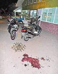 警方調(diào)查,昨下午三時三十分,蘇男騎摩托車抵屏東臺糖冰品部停車場時,郭女已在廣場等候,兩人停下機車談判,但才過幾分鐘,蘇、郭兩人一言不合吵了起來,蘇男突取出水果刀欲刺郭女,郭女轉(zhuǎn)頭想逃,但背部仍遭蘇男連刺六刀,傷重不支倒地。蘇男隨后持刀自刺頸部、左手臂、左腕后倒地,由于案發(fā)地點就在市區(qū),兩人很快被人送到醫(yī)院。軍方接報為避免蘇男情緒波動太大,已派人在醫(yī)院看護,而女方家人趕到醫(yī)院時,低調(diào)不愿多談。兩人均已脫離險境。
