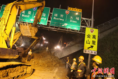 中新網(wǎng)4月27日電 綜合臺灣媒體報道,臺灣高速公路“北二高”近基隆路段山崩搶救現(xiàn)場持續(xù)開挖,臺灣高速公路局表示,要清除的土方約20萬立方公尺,最快逾1星期清完。此外,疑似被困車輛增至3輛,受困人員為4人。