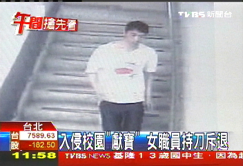 中新網(wǎng)5月17日電 據(jù)臺(tái)灣TVBS電視臺(tái)報(bào)道,一名男子在上星期五晚上,入侵臺(tái)北商業(yè)技術(shù)學(xué)院,趁著一名女職員加班獨(dú)自在辦公室,竟然脫下褲子騷擾女職員,而這名女職員相當(dāng)鎮(zhèn)定,拿起美工刀喝斥男子,這名男子才落荒而逃。