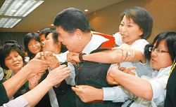 中新網(wǎng)5月11日電 據(jù)臺(tái)灣《中國時(shí)報(bào)》報(bào)道,臺(tái)“立法院”昨天(10日)首度針對(duì)開放陸生來臺(tái)、承認(rèn)大陸學(xué)歷進(jìn)行“有官員答詢”的委員會(huì)初審,一整天大小沖突不斷。朝野“立委”先為了臺(tái)“教育部長”吳清基請(qǐng)假不到吵架,下午又為延長開會(huì)時(shí)間潑水沖突。最后主席張慶忠在偷藏麥克風(fēng)、拉扯、捂嘴的沖突中宣布完成“兩岸人民關(guān)系條例”修正草案初審。