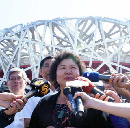 中新網(wǎng)5月22日電 據(jù)“中央社”報(bào)道,高雄市長(zhǎng)陳菊今天參觀位于北京的國(guó)家體育場(chǎng)鳥(niǎo)巢,陳菊稱(chēng)贊鳥(niǎo)巢是一個(gè)現(xiàn)代化并且重視生態(tài)保護(hù)的體育場(chǎng)。
