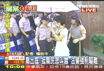 中新網(wǎng)6月16日電 據(jù)臺灣“今日新聞”報道,臺北地方法院16日上午開庭審理陳水扁弊案,并傳喚陳水扁與馬永成等多人進行對質(zhì),由于地方法院外有許多陳水扁支持者,由于旁聽席只有20席引發(fā)扁迷不滿,甚至一名男子還進入法庭大聲抗議,遭到審判長蔡守訓(xùn)強制驅(qū)離,而這名扁迷的動作甚至還一度讓陳水扁受驚。