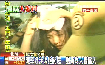 護(hù)衛(wèi)隊(duì)作風(fēng)強(qiáng)悍,組成人墻,用雨傘一路護(hù)著陳幸妤,不讓媒體拍到陳幸妤的表情,躲在雨傘下、戴著漁夫帽的陳幸妤,似乎被雨傘戳到臉,表情不悅,一度不耐、吼叫出聲,而開庭結(jié)束離開時(shí),又再次爆發(fā)沖突,目前趙建銘正在接受偵訊當(dāng)中。