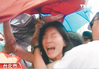 警方見狀上前攔阻陳幸妤,護衛(wèi)隊及護士趨前拉住她,混亂中護衛(wèi)隊的雨傘骨架刺中多名記者的眼睛與臉部,還打落值勤警察的警帽。