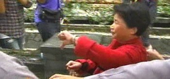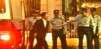 在法警的護(hù)送下,陳水扁身著黑西裝,手拿一份牛皮紙袋的資料,從臺(tái)北看守所出發(fā)乘警備車(chē)前往法院。下午5時(shí)40分,車(chē)隊(duì)抵達(dá)法院,陳水扁臉上帶著一抹淺淺的微笑,未戴手銬。