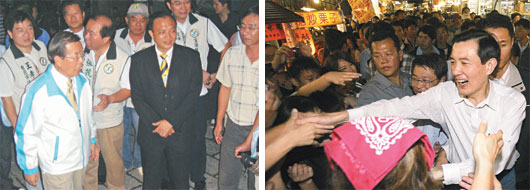 中新網(wǎng)11月1日電 馬英九與謝長廷曾是去年臺灣“大選”競爭對手,10月31日不約而同到宜蘭縣分別為國民黨和民進黨縣長候選人呂國華、林聰賢造勢拼人氣。兩人同時逛熱鬧夜市,兩路人馬一度狹路相逢,互別苗頭,令警方如臨大敵。