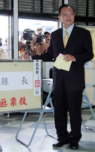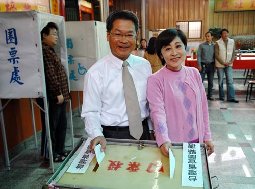 中新網(wǎng)12月5日電 臺(tái)灣縣市長(zhǎng)選舉今天(5日)投票,在藍(lán)綠陣營(yíng)爭(zhēng)奪激烈的“超級(jí)戰(zhàn)區(qū)”宜蘭縣,國(guó)民黨參選人、現(xiàn)任縣長(zhǎng)呂國(guó)華和民進(jìn)黨參選人林聰賢不約而同都選在上午9時(shí)左右前往投票。