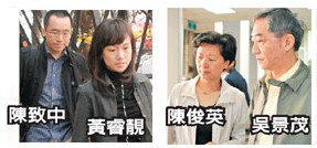 律師表示已經(jīng)多次未到庭的吳淑珍下午會(huì)準(zhǔn)時(shí)到庭,合議庭今天傳訊扁家白手套蔡銘杰、蔡銘哲兄弟、陳鎮(zhèn)慧、郭銓?xiě)c,以及吳景茂、陳俊英夫婦,陳致中、黃睿靚夫婦,下午則傳訊吳淑珍和馬永成、林德訓(xùn)。